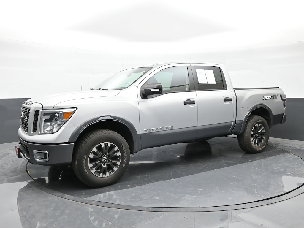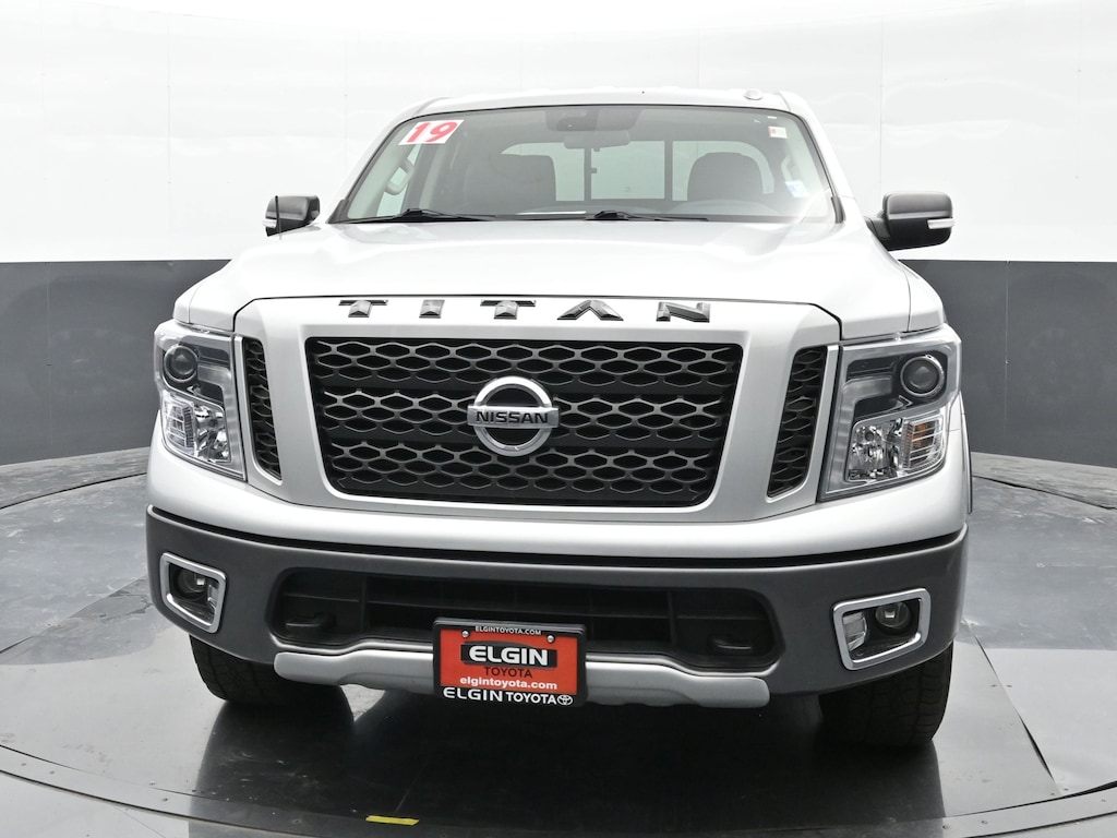 Conquer the road and trail with confidence in this 2019 Nissan Titan PRO-4X 4x4 Crew Cab. Finished in Brilliant Silver with a bold black interior, this rugged full-size truck is built for those who demand both power and off-road capability. Under the hood, the Titans robust V8 engine delivers impressive towing capacity and confident performance, while the PRO-4X off-road suspension, skid plates, and electronic locking rear differential ensure youre ready for any adventure.